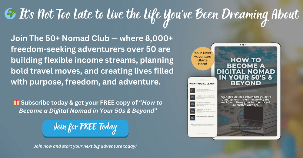 Subscribe Today and get your FREE copy of “How to Become a Digital Nomad in Your 50s & Beyond“
